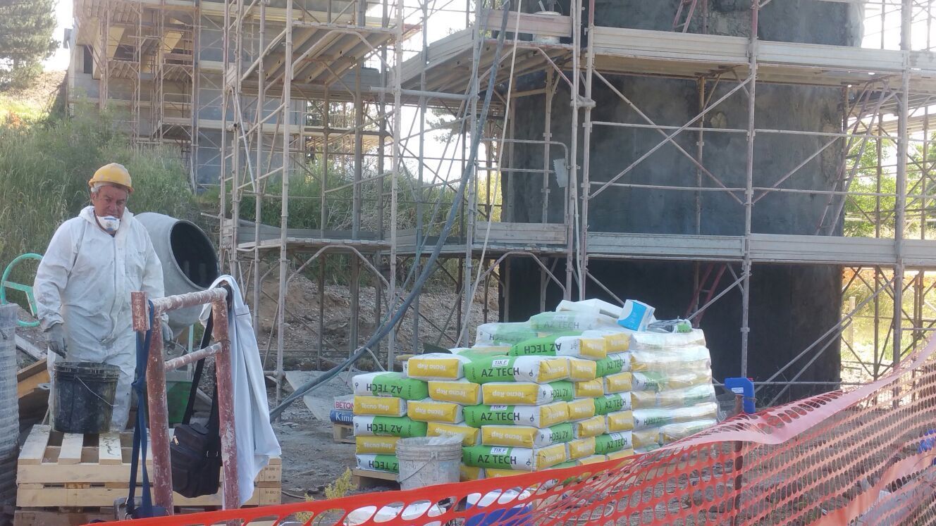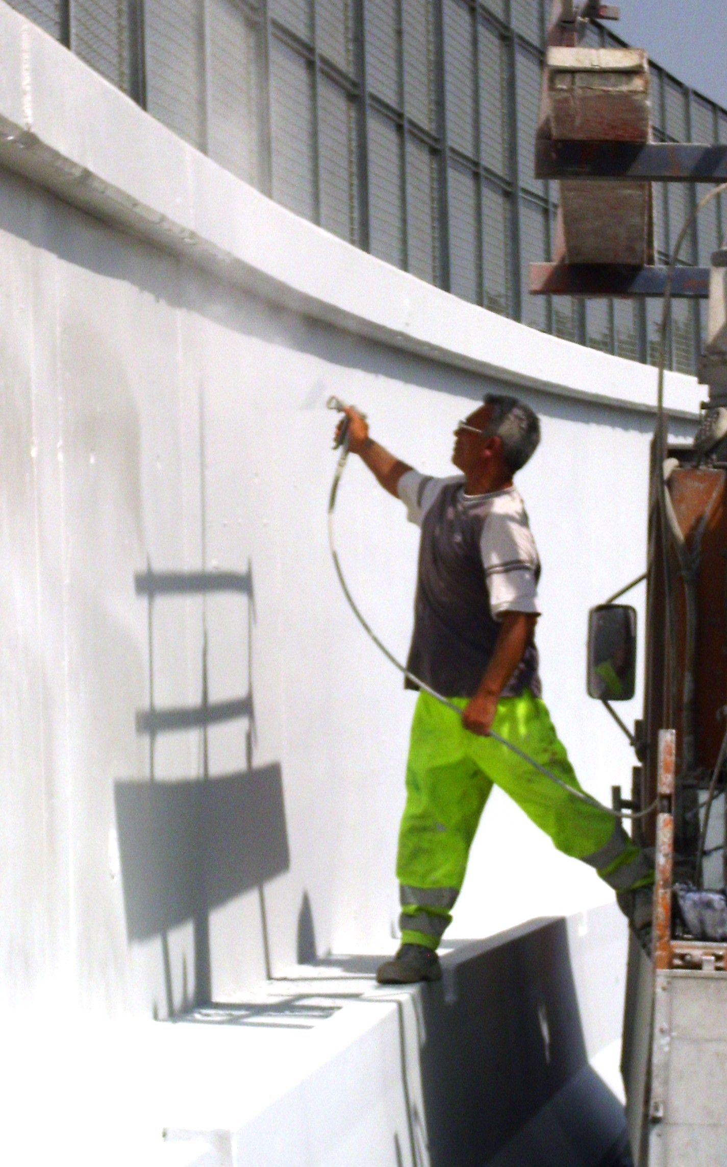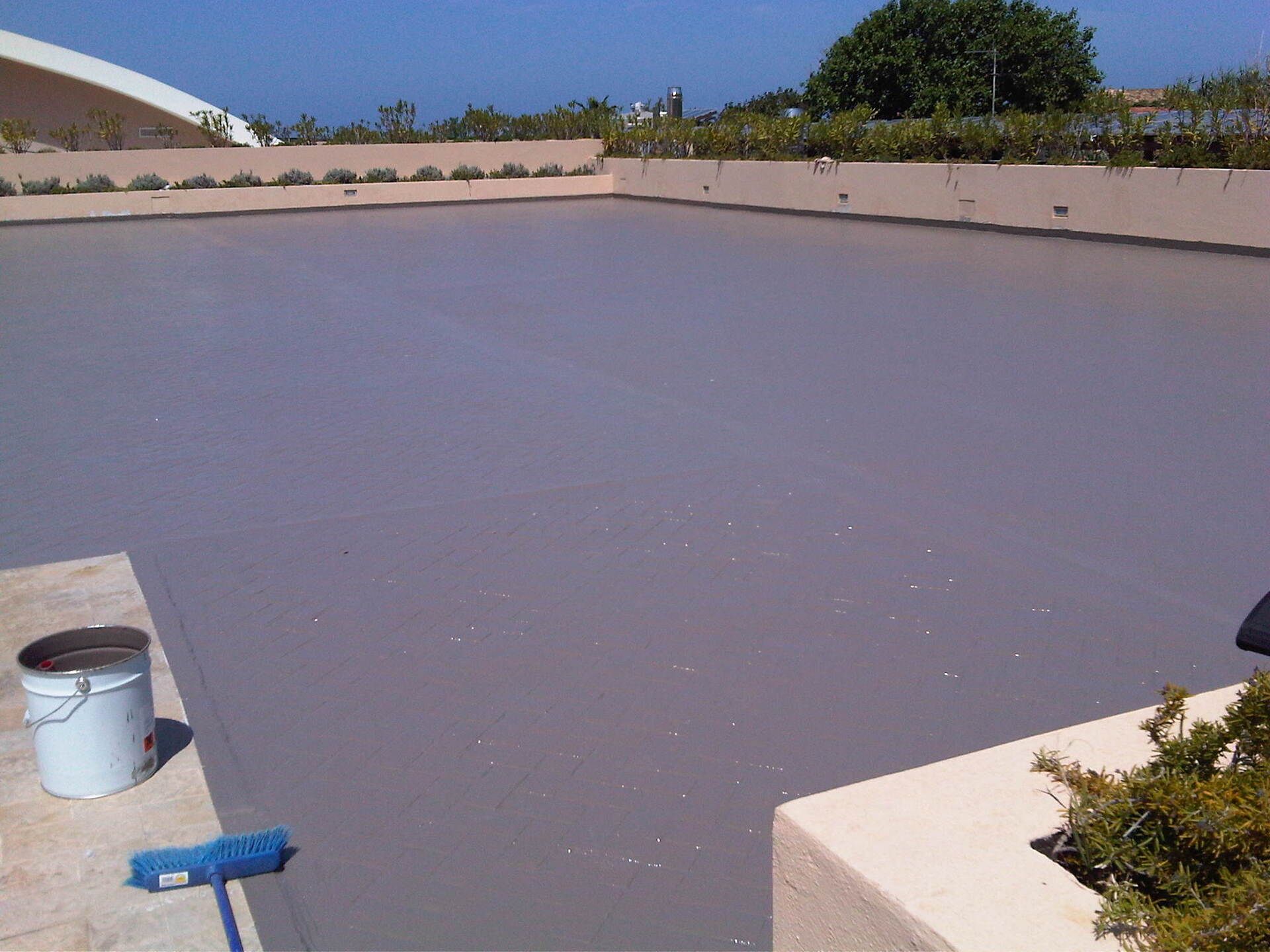 Impermeabilizzazione decorativa e carrabile di piazzetta comunale sovrastante parcheggi sotterranei, mediante ciclo cementizio elastomerico, pigmentato nella mano finale